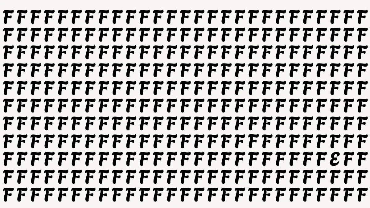If you struggled to find the hidden letter E, don’t worry this puzzle is made to fool your brain. Because the image is packed with repeated F characters, your eyes quickly assume every symbol is the same.