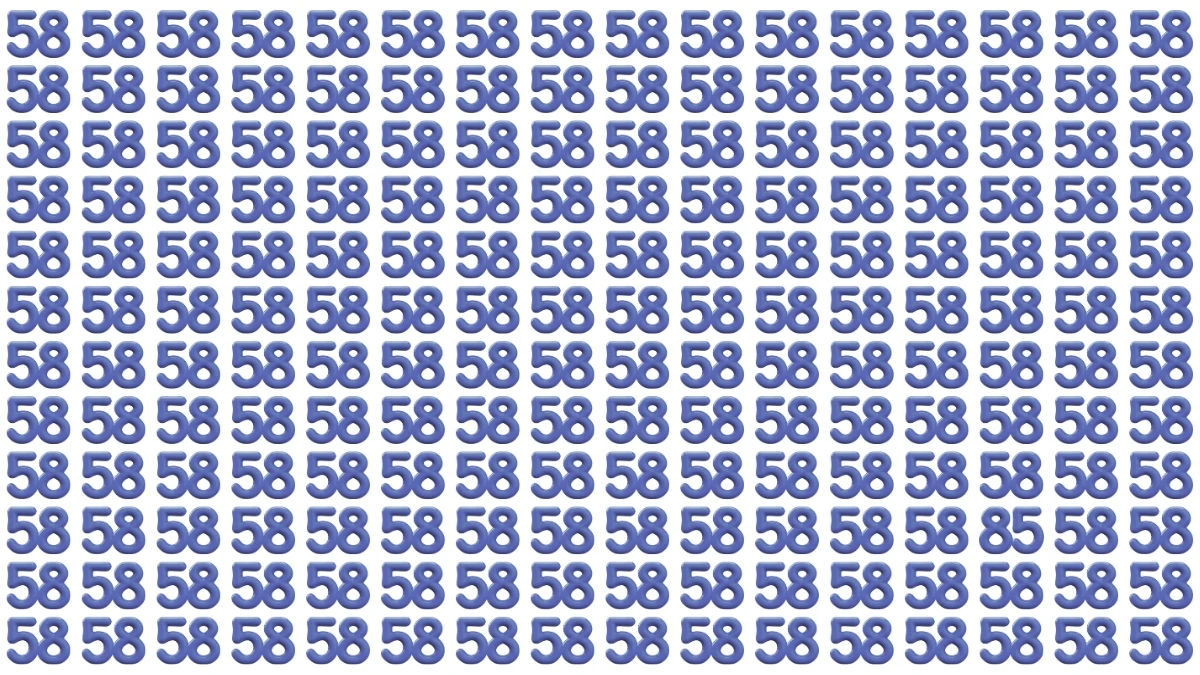 In this optical illusion, your task was to find the hidden number 85 among a sea of 58s. At first glance, it seems like a repetitive pattern of "58" that makes it tricky to spot the different number.