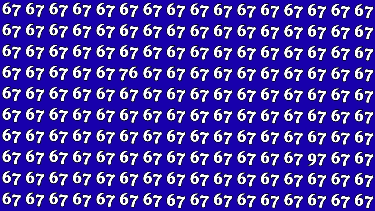 At first glance, the sequence may seem like an endless repetition of 67s, but if you focus closely, the numbers 76 and 97 are subtly embedded within the pattern.